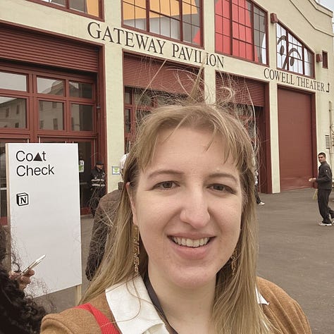 Then came the big day: the Make with Notion conference itself, hosted at Fort Mason with over 1,700 people attending. The setting was gorgeous—right on the water, with seagulls flying overhead.